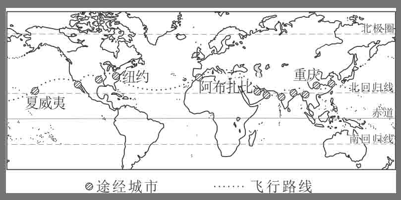 太阳能飞机环球飞行路线示意图