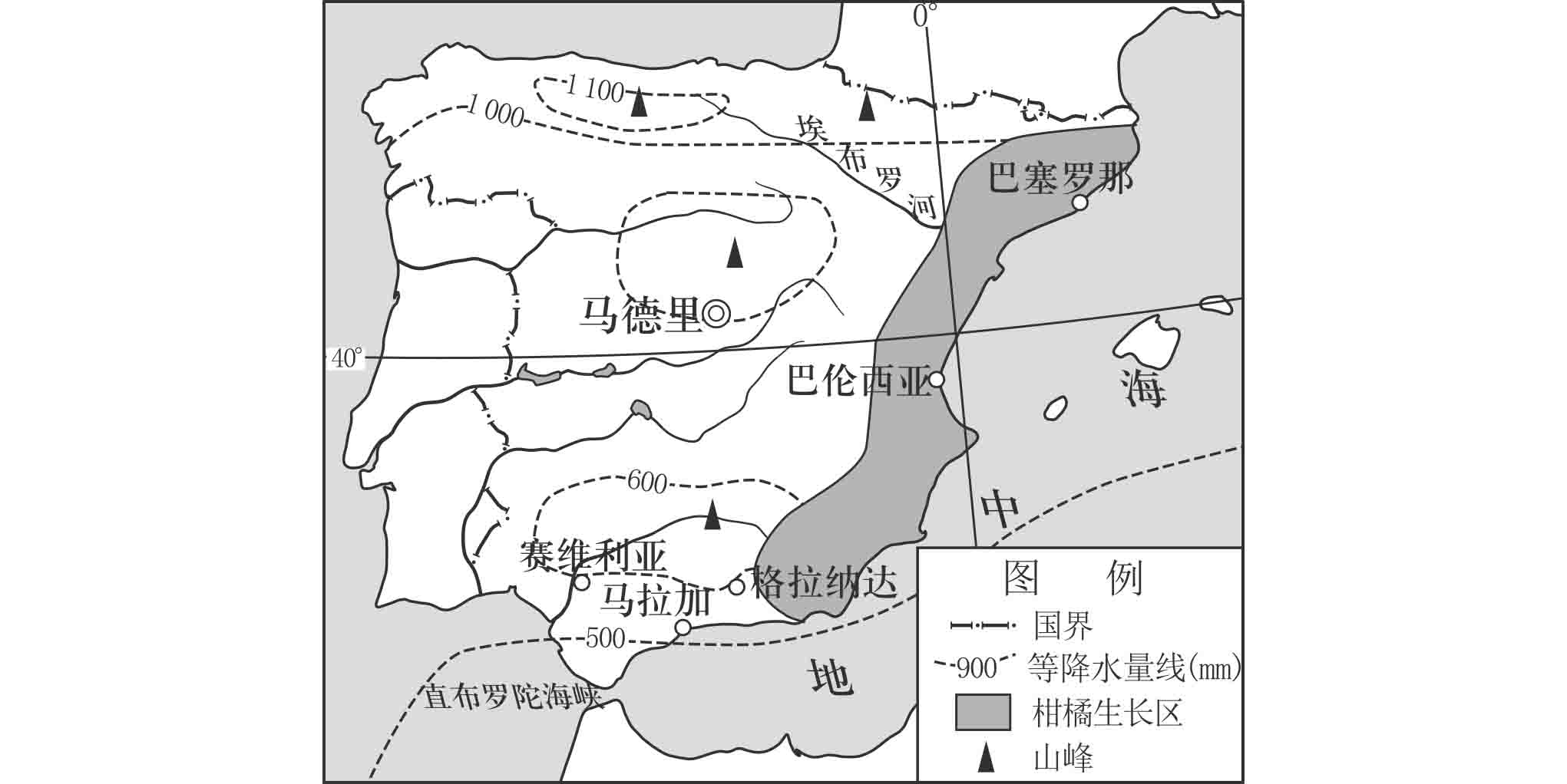 西班牙区域降水量分布柑橘图