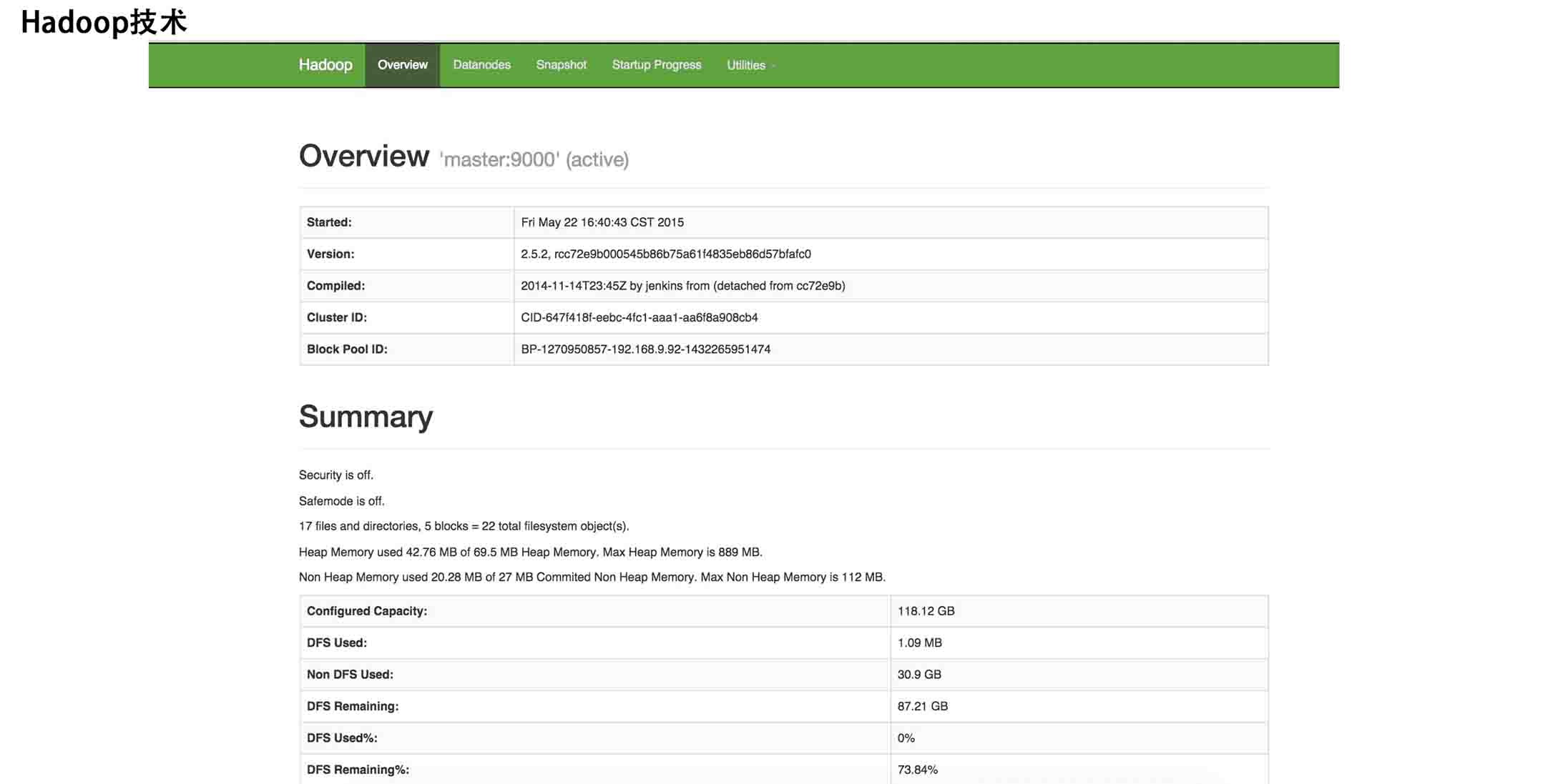 Hadoop技术是一个能够对大量数据进行分布式处理的软件框架,它擅长存储大量的半结构化的数据集,且数据可以随机存放。Hadoop技术以一种可靠、高效、可伸缩的方式进行数据处理,它也非常擅长分布式计算——快速地跨多台机器处理大型数据集合。